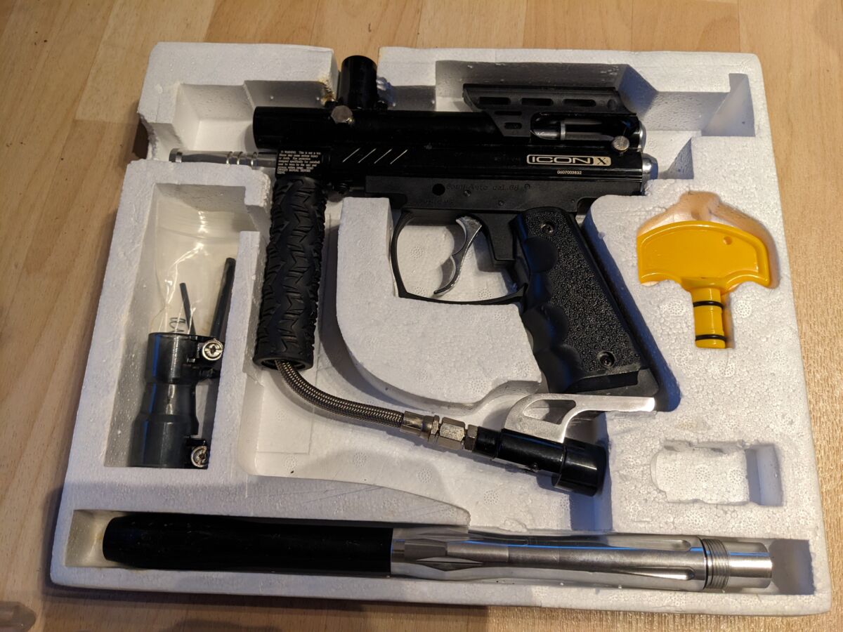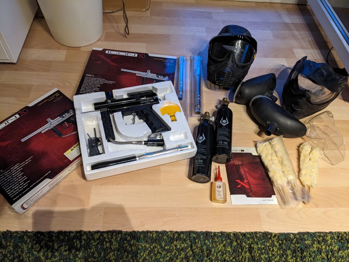 Verkaufe 2 Markierer (ICON-X) mitsamt Kartuschen, Masken usw. (Details siehe Bilder dieser Anzeige)