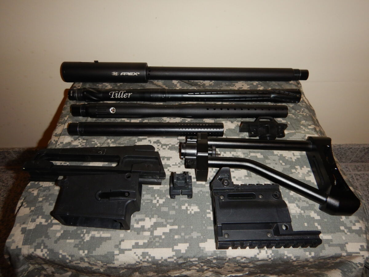 Verkaufe wegen Hobbyaufgabe meine Tippmann X7 Phenom mit Tacoma Magfeed Kit. Es sind 2 Magwell dabei, eins für das Magazin das andere für das RAP4 Box Mag mit Nautilusfeed. Die Flasche wird auf dem Rücken getragen und über ein Mamba mit dem Markierer verbunden. Befüllt wird die Flasche bequem ohne abzunehmen über den separaten Füllschlauch. Durch die verschiedenen Läufe und Schulterstützen lässt sich die Optik individuell anpassen. es sind zwei Wahlhebel für die verschiedenen Feuermodis dabei, einer ohne Magnet und einer mit, der das Bord für Spiele im ausland freischaltet. Der Tüv der Flasche ist abgelaufen, kann aber nachgetüvt werden, Final ist 2031. ein farblich passendes Battlepack von Empire mit drei Pods ist mit dabei. Bei Fragen oder weiteren Bildern einfach melden.