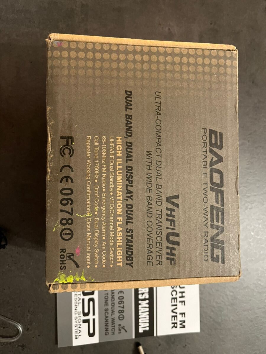 Das Funkgerät wurde einmal verwendet, Schutzfolie teilweise noch vorhanden.