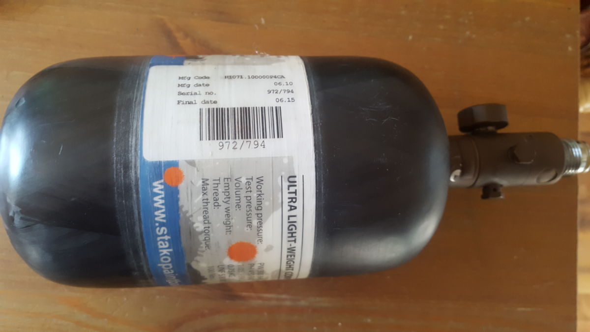 Biete ultra light weight 300bar, 1,1Liter CO² Carbon Flasche von STAKO nur 750gr. leicht
