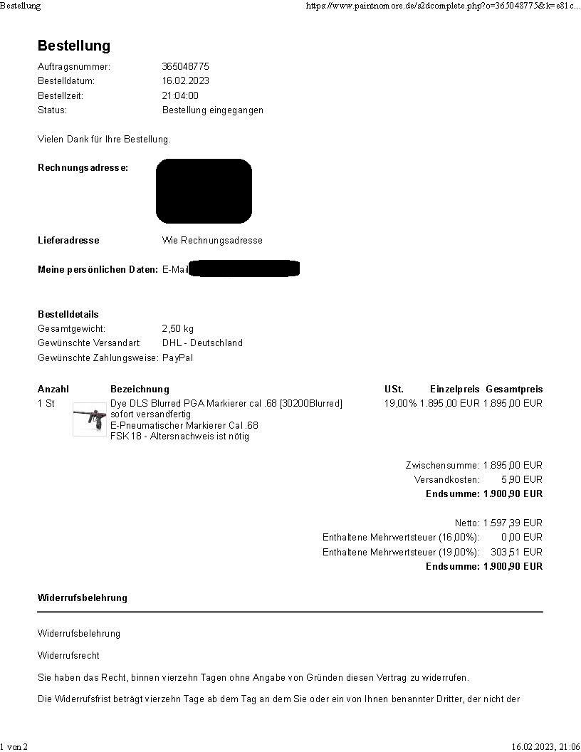 Paypal und Versand Möglich
