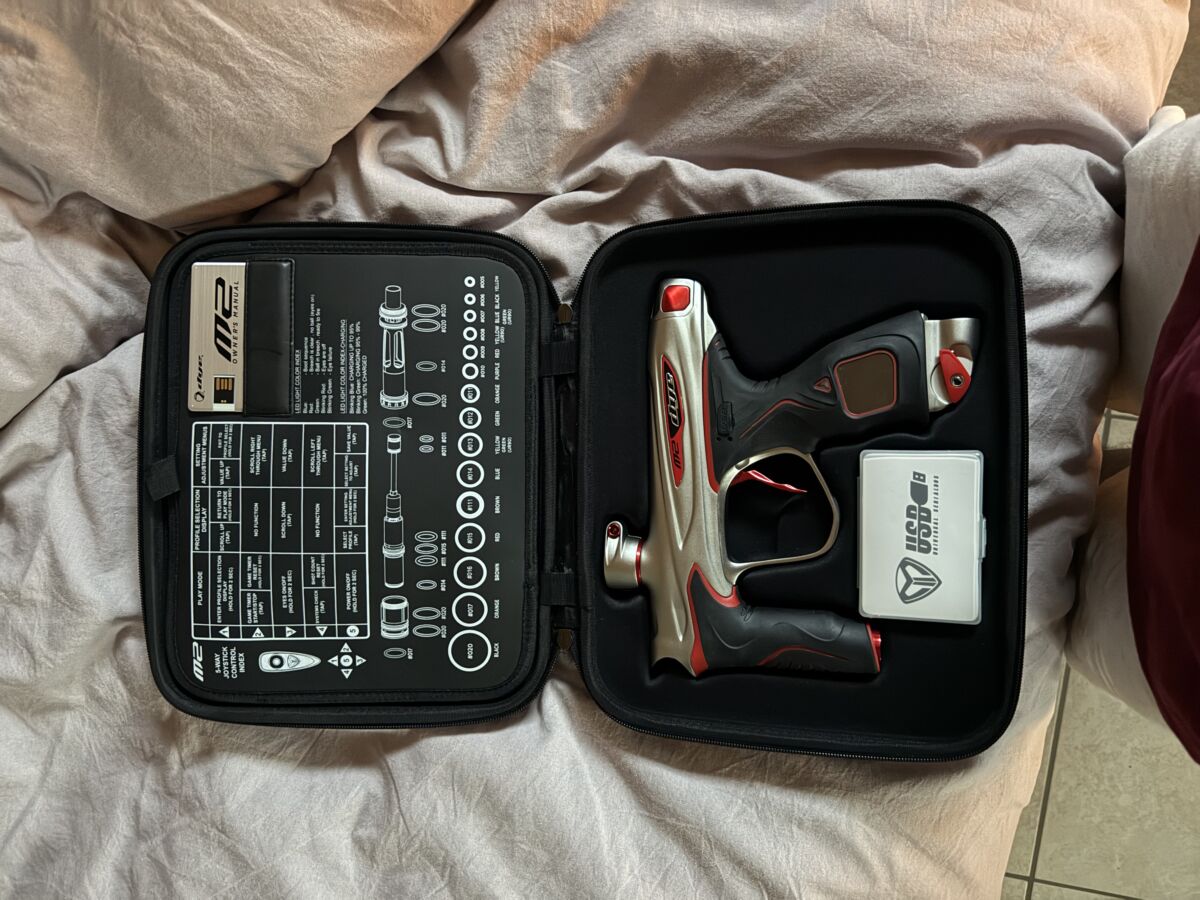 ich verkaufe traurigerweise meinen DYE Markierer da ich leider keine zeit mehr habe zu spielen der Markierer war bei zwei turnieren aktiv und hat ca. 14571 Schüsse hinter sich. Ich habe auch noch einen Tank und einen Hopper von Virtue Spire.