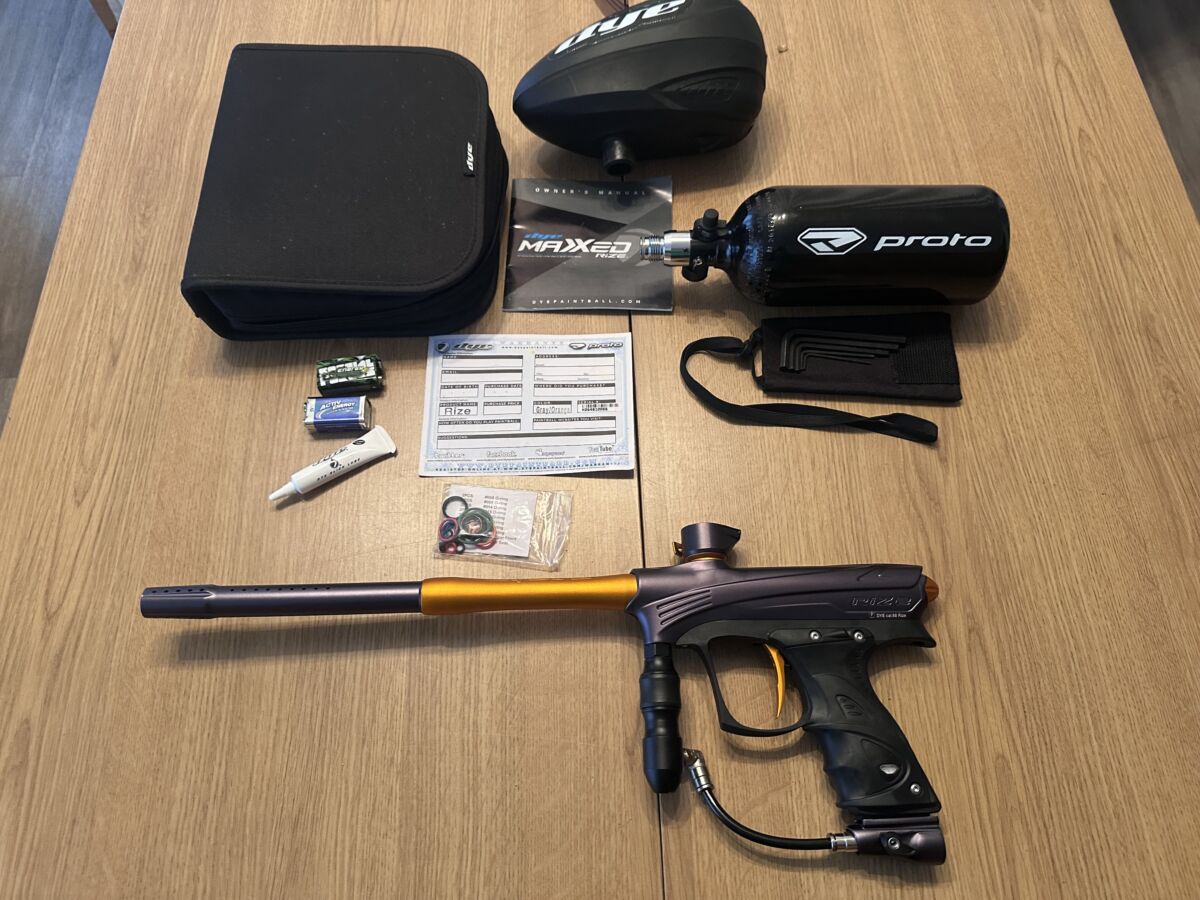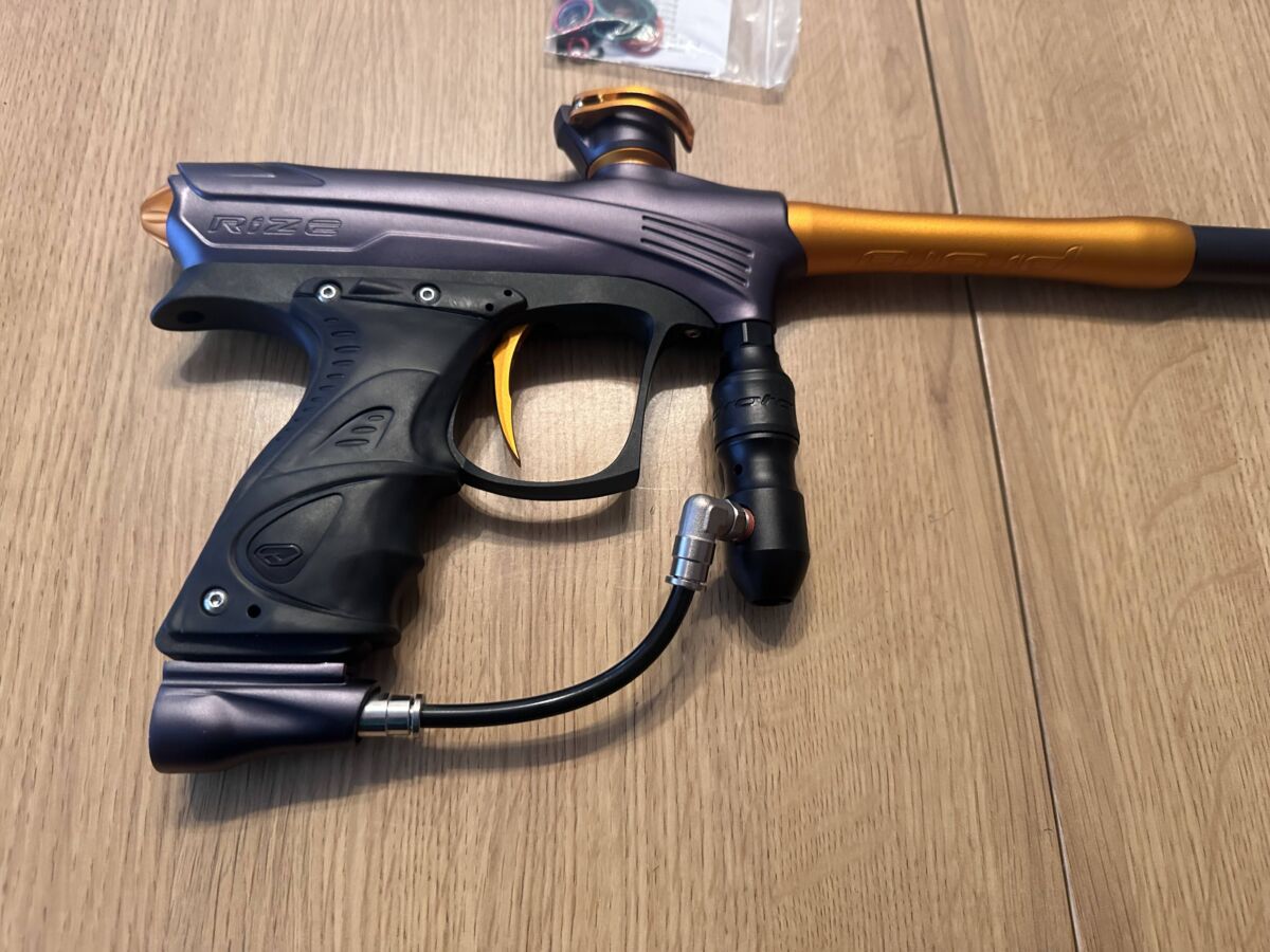 Zum Verkauf steht ein hochwertiger Paintball-Markierer im absoluten Top-Zustand. Dye Proto Rize MaXXed – Black Orange