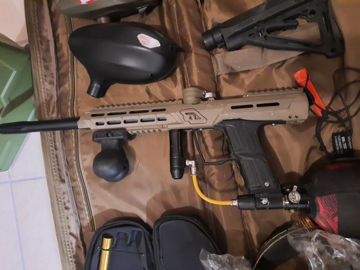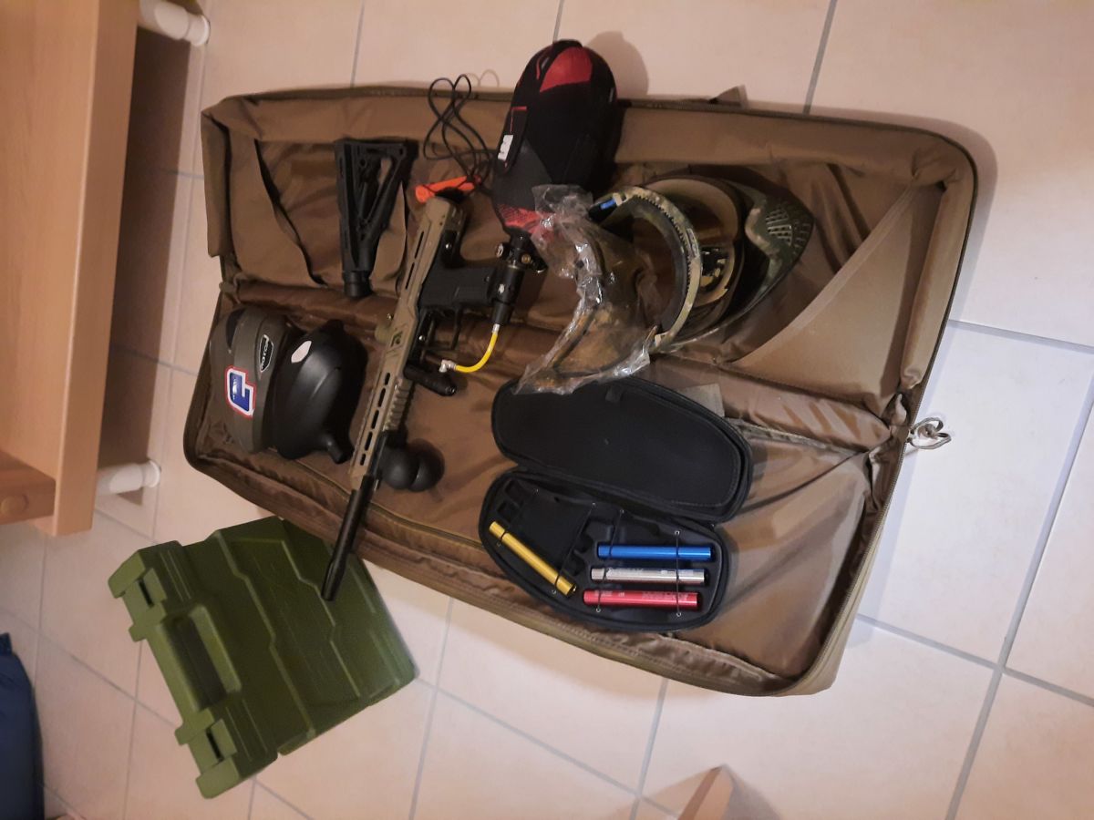 Hey, ich verkaufe mein Equipment. Läuft alles und ist in gutem Zustand. Alles auf den Bildern und noch mehr. Markierer, 300bar HP, Freak-Set, Dye Maske i5, Futteral, Rotor, Ersatzhopper,