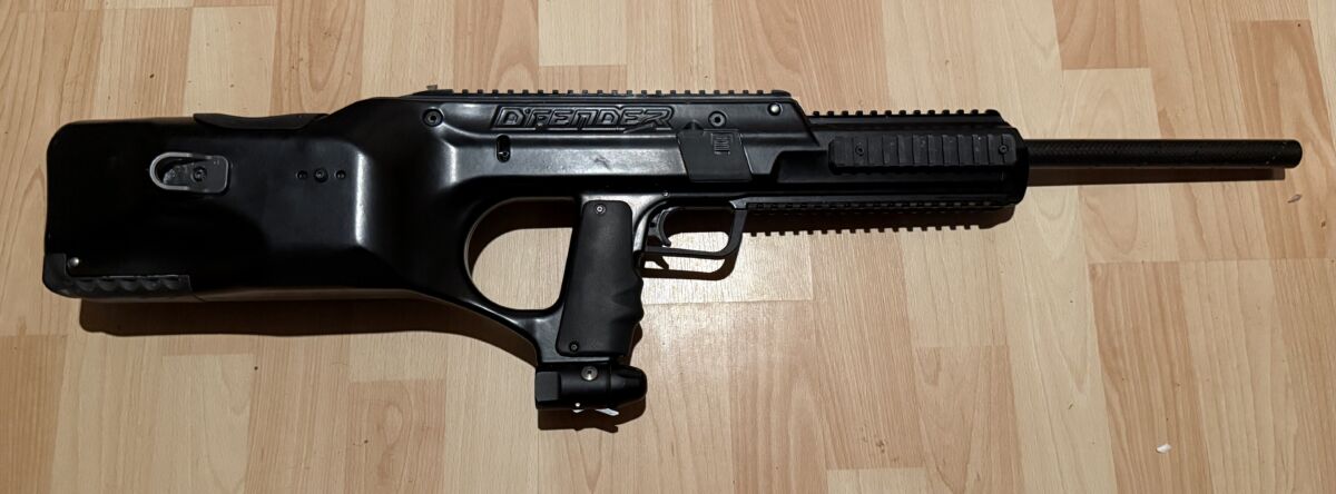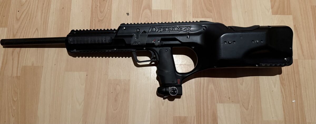 Super Dfender, dicht und sofort einsatzbereit. Besonderheit ist die schwarze Pulverbeschichtung. Mit dabei ein US Board fürs Ausland. Der Lauf ist ein extra leichter Carbonlauf.