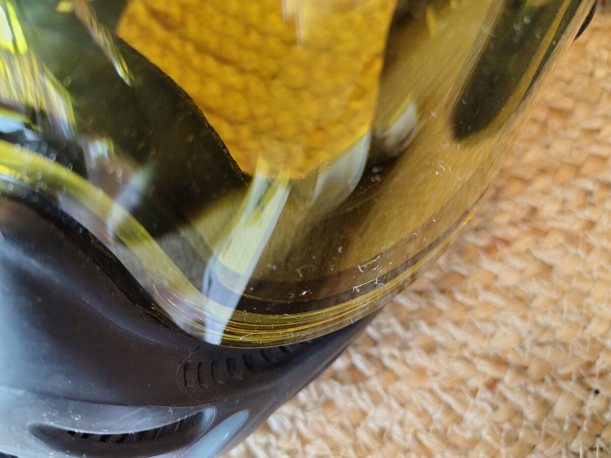 Maske wurde viel benutzt aber immer gut gepflegt. Empire Aufkleber an der Stirn ist schon ab