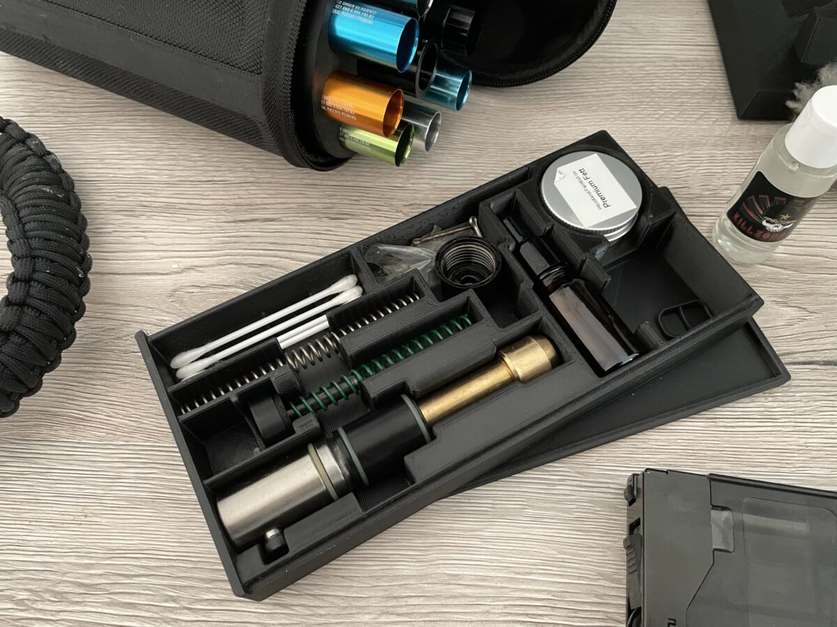 First Strike T15 Gen 5 inkl. Anbauteile/Optik‑Setup (wie abgebildet), 6× T15 V2 Magazine, MCS Boxmag/Box Drive (zusätzlich, nicht in den 6 Mags enthalten), großes Freak XL Set (komplett inkl. Koffer/Inserts), originale First‑Strike Flasche (0,2 L / 200 bar), HERA Arms Hartschalen‑Transportkoffer, Virtue Vio XS II Maske, Carrier/Weste + Pouches, Tragegurt, Pflege-/Wartungszeug und weiteres Zubehör wie abgebildet.