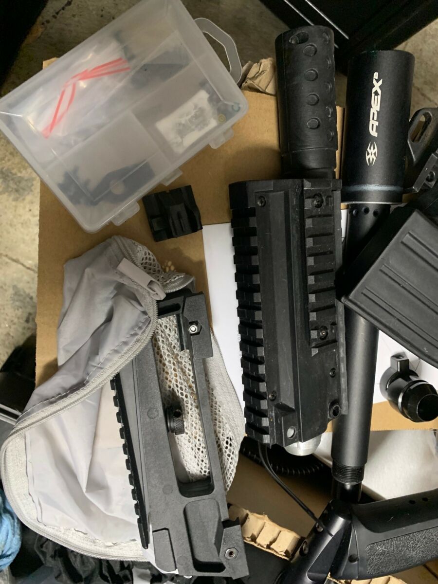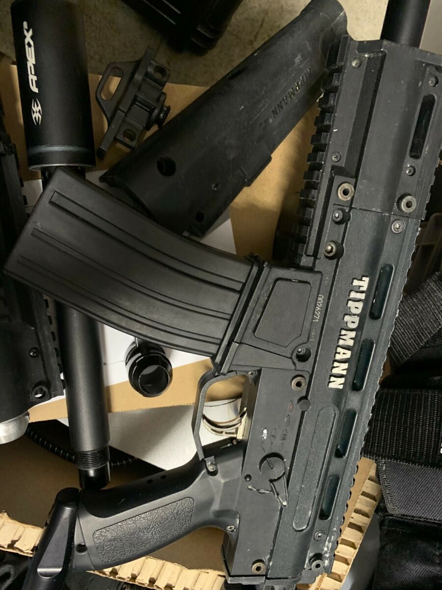 – Marker: Tippmann X7 Phenom mit etlichem Umbau-Zubehör, Shrouts, Flatline-Lauf, Ersatzteilen usw.