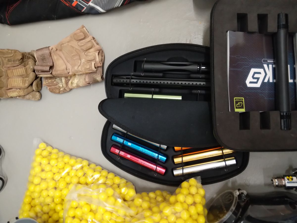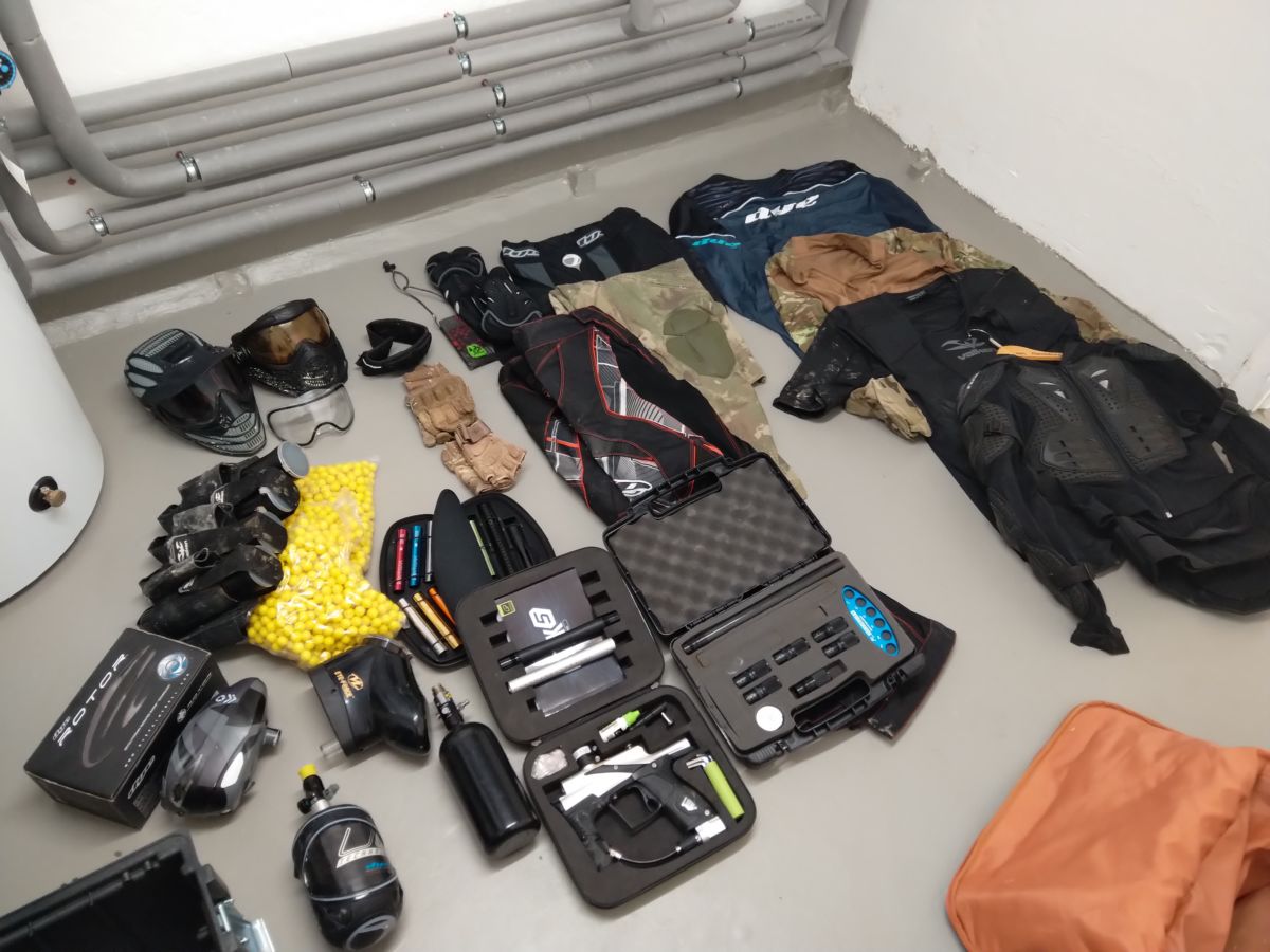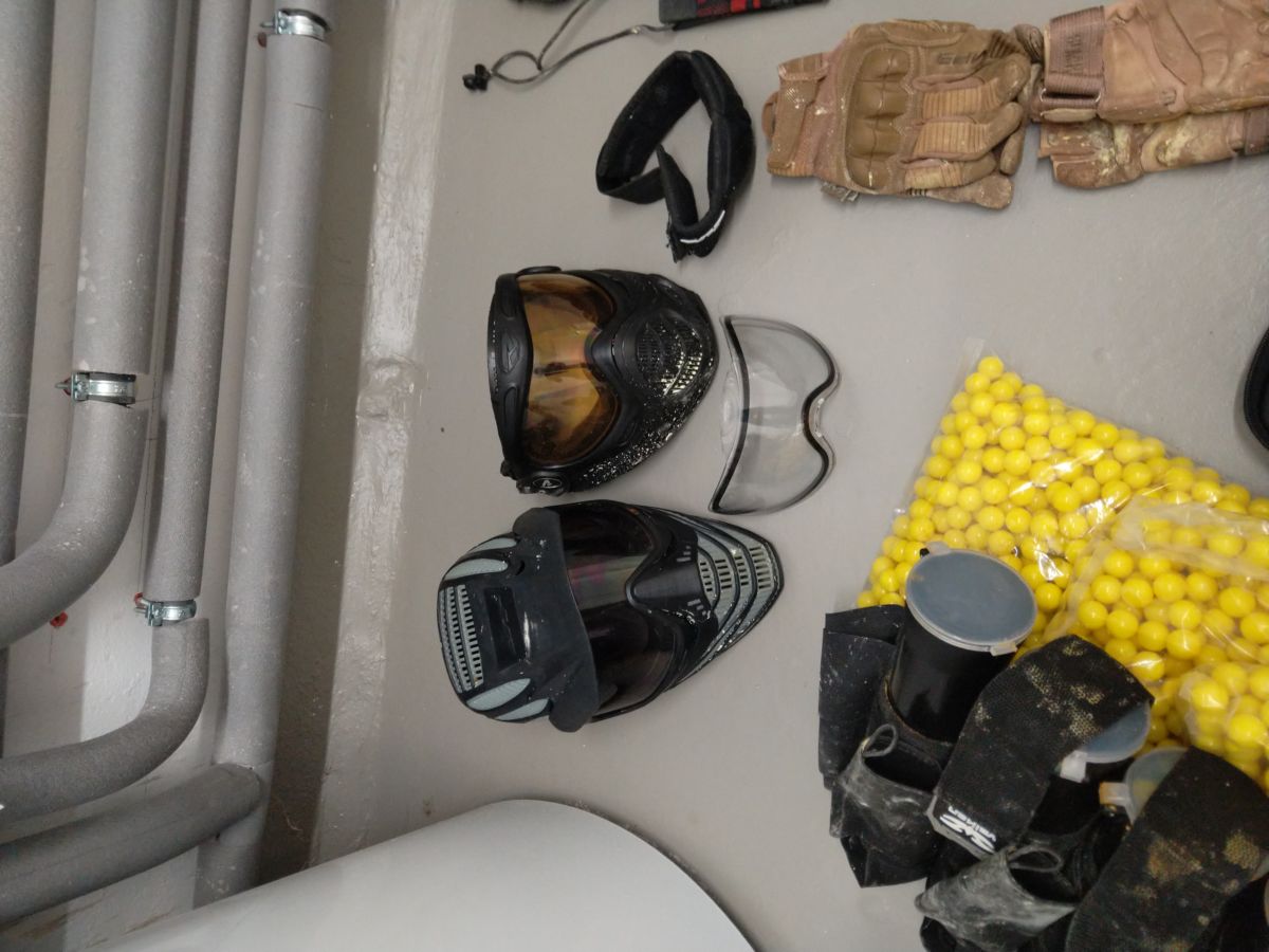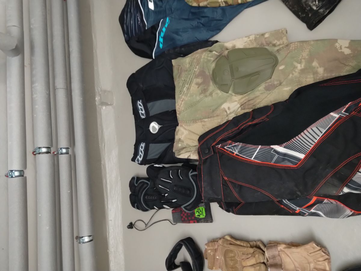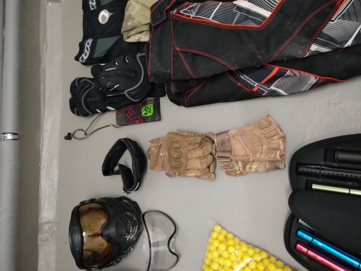 Zwei Paar Handschuhe einen halsschutz ellbogenschoner