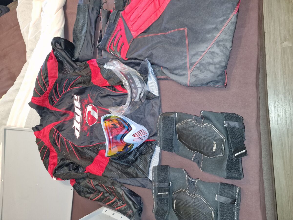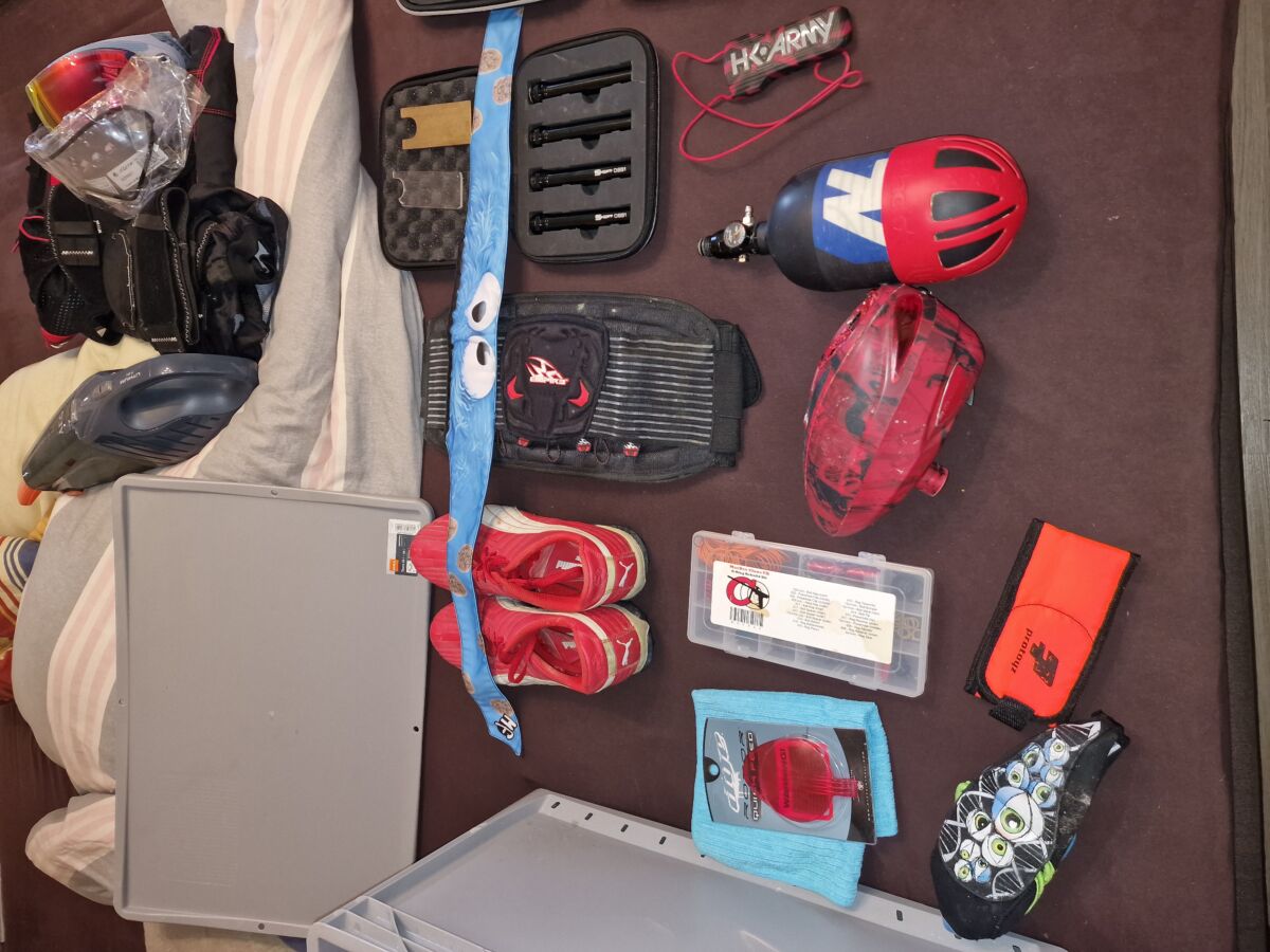 Varkaufe hier mein Set Up. Alles sehr wenig benutzt, das letzte mal vor ca 4 Jahren. bin 188 cm groß, 100 kg. ich habe die Ausrüstung damal von meinem Bruder bekommen, kenne mich nicht allzu sehr damit aus. TüV auf der Flasche abgelaufen. Funktionierte bis zum Ende ohne Probleme. Ist ein komplettes Set, alles was man zum spielen brauch, inklusive der grauen Box. Weder Markierer noch Brillengläser haben irgendwelche Kratzer. Kann jederzeit in Stuttgart-Degerloch (70597) angeschaut werden. 2000 Balls sind noch dabei, weiß aber net ob man die noch gebrauchen kann 🙂 Markierer ist mit Pooty Bolt ausgerüstet.
