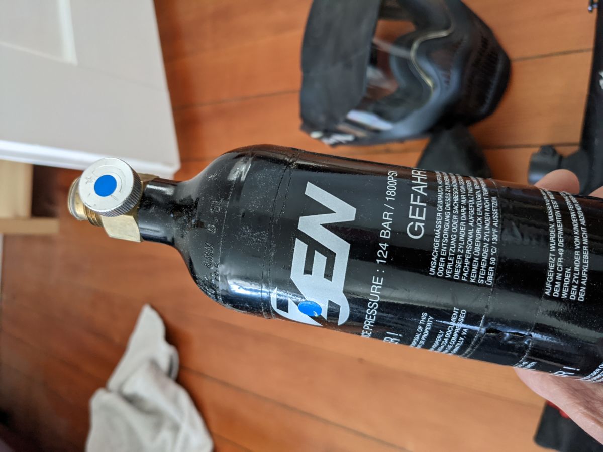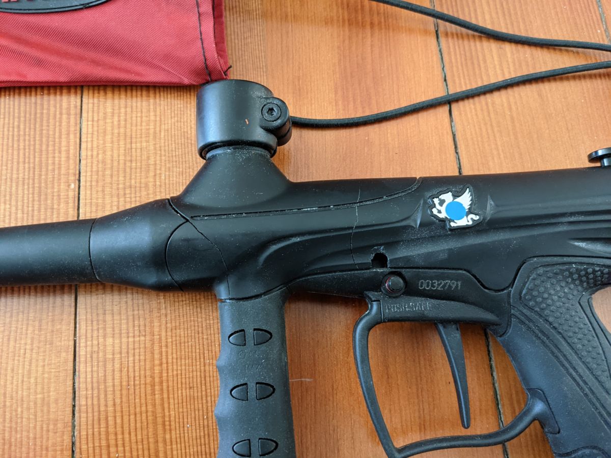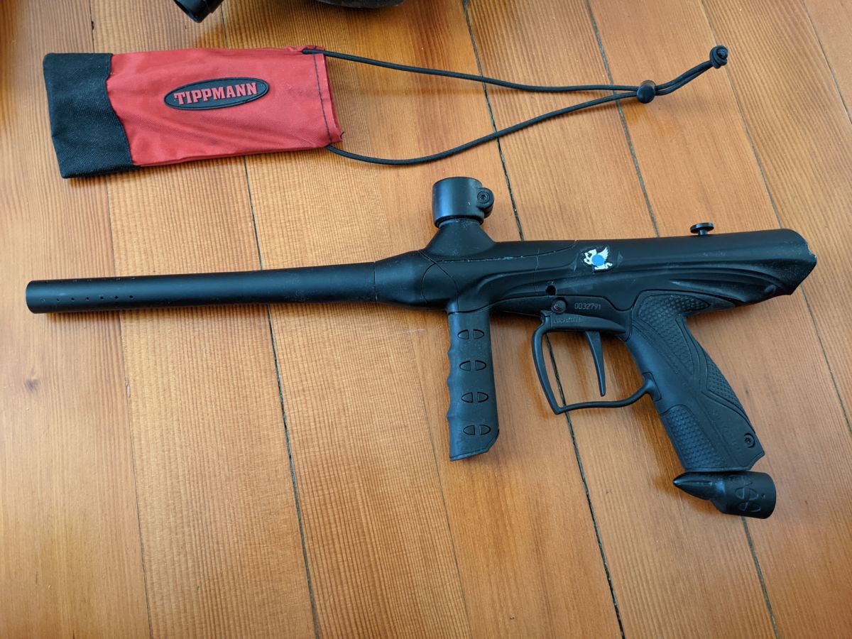 Verkaufe Markierer Set, wie abgebildet mit Maske, Hopper und CO2 Flasche (gefüllt). Set wurde zweimal verwendet und liegt nun schon einige Zeit ungenutzt rum, weshalb ich es verkaufen möchte. Am Markierer ist leider das Plastik etwas gebrochen, siehe Bild. Ansonsten alles in gutem Zustand und funktionsfähig. Gerne Abholung, Versand ist aber auch möglich, dann aber nur mit entleerter CO2 Flasche.