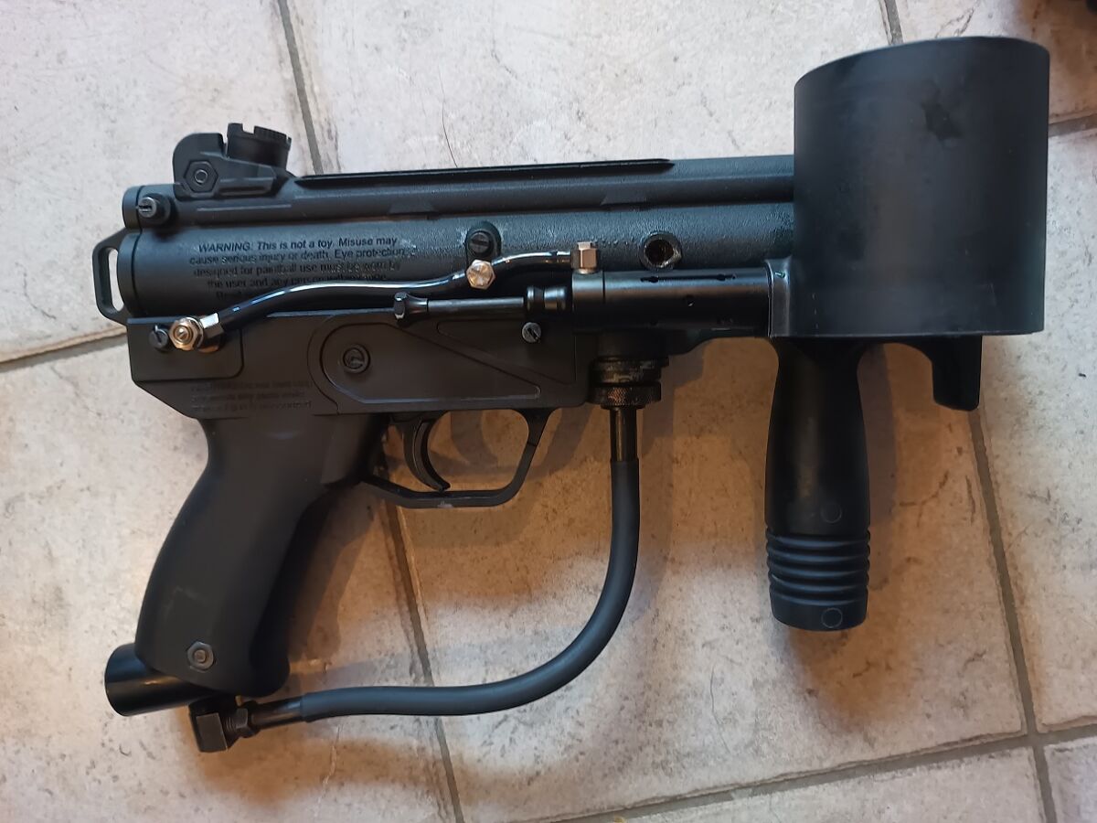 Tippmann A-5 Paintball Markierer: Mein A-5 ist in hervorragendem Zustand und verfügt über eine Response Trigger, die die Schussfrequenz erhöht und ein realistisches Schusserlebnis bietet.