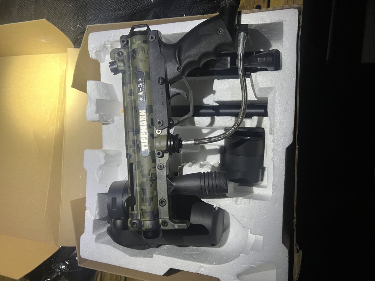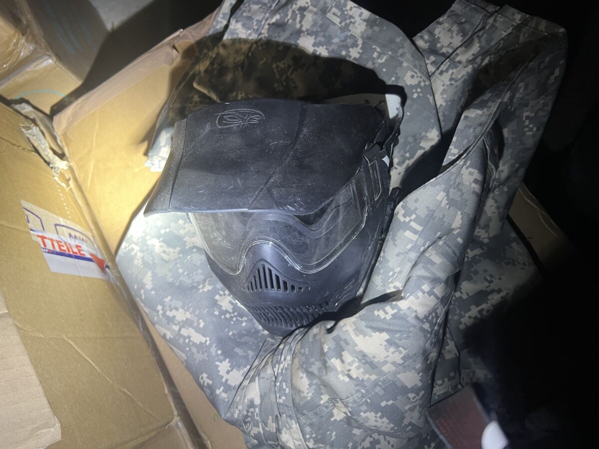 Ich verkaufe ein Painball Set mit Jacke, Hose, Hanschuhen, Helm, und Gaskartusche