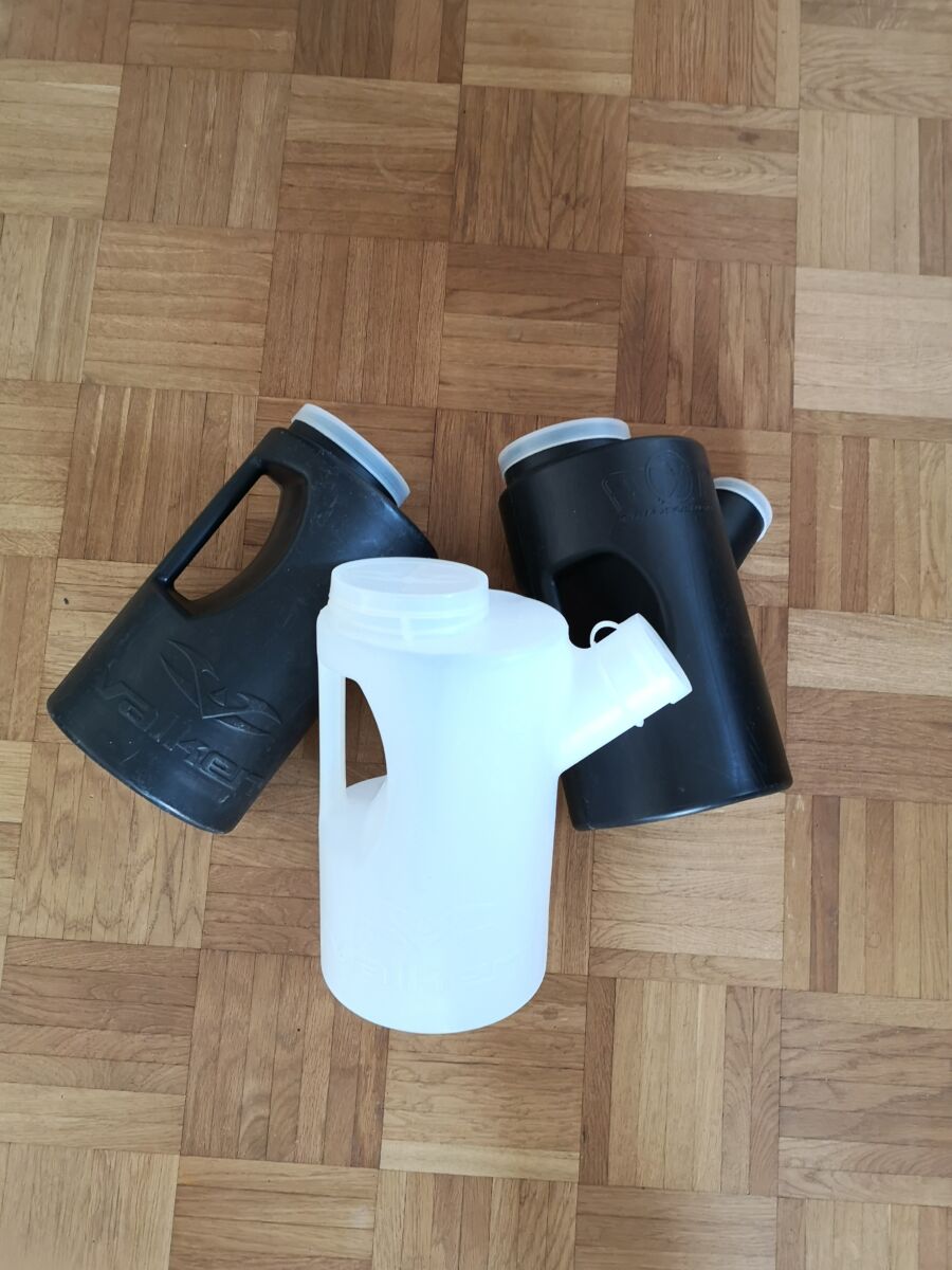 1x Weiß und 1x schwarz von Valken und 1x schwarz von Glen x Global. Fassungsvermögen ca. 1100 Paints.