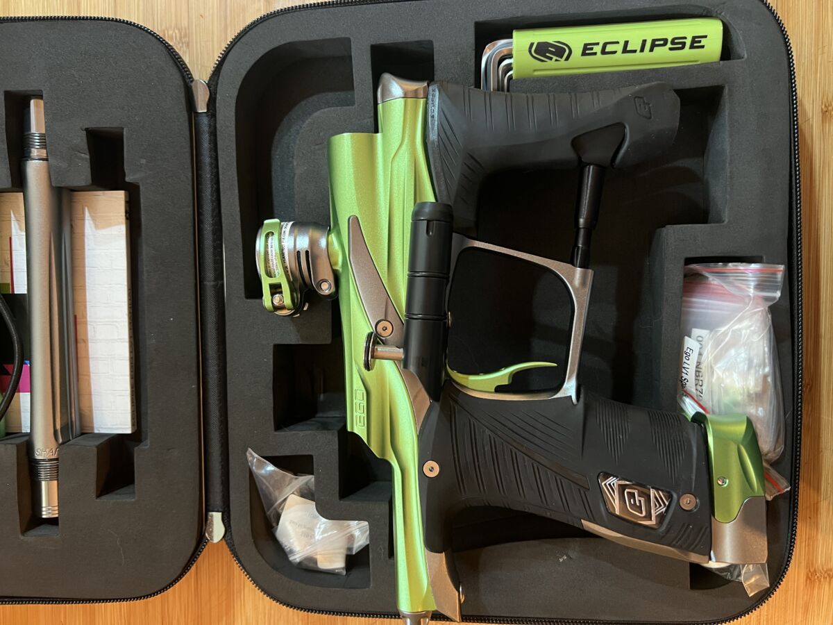 Hallo ich verkaufe schweren Herzens ein paar Markierer aus meiner Paintball Sammlung. Hier biete ich eine ungespielte Planet Eclipse LV1 Color Mix an in den Farben grau und grün.Sie hat nur ein Mal das Spielfeld gesehen. Der Koffer hat ein paar Macken abbekommen der Markierer ist in einem top Zustand.Ein Export Bolt ist mit dabei. Weitere Fragen kann ich gerne beantworten.