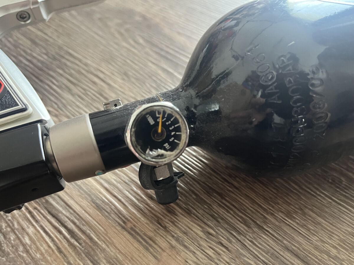 Der Markierer ist gebrauch aber in sehr gutem Zustand. Es ist ein Vision Board verbaut. Der Lader hat einen speedfeed und ist auch in einem Guten Zustand. Der einzige Mangel sind die beschädigten Manometer an Flasche und Markierer. Leider kann ich das Hobby aus zeitgründen nicht mehr ausüben und verkaufe daher, schweren Herzens, meine Ausrüstung.