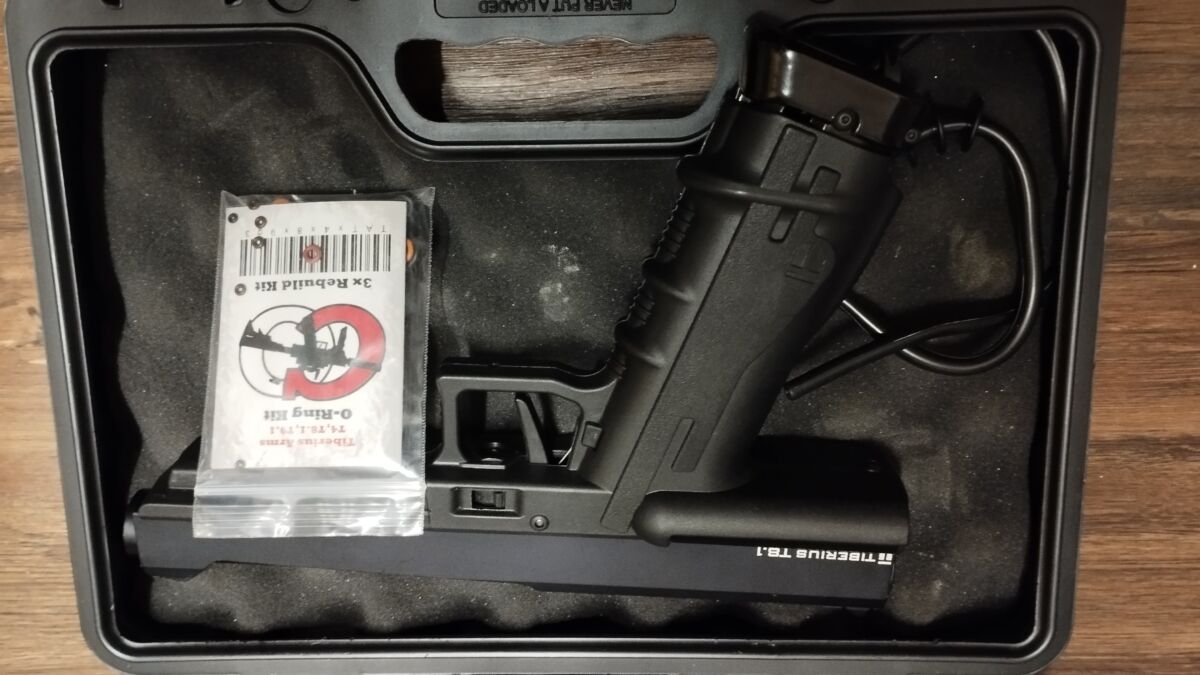 Funktioniert einwandfrei, inkl. Koffer, 1 Magazin und O-Ring Set.