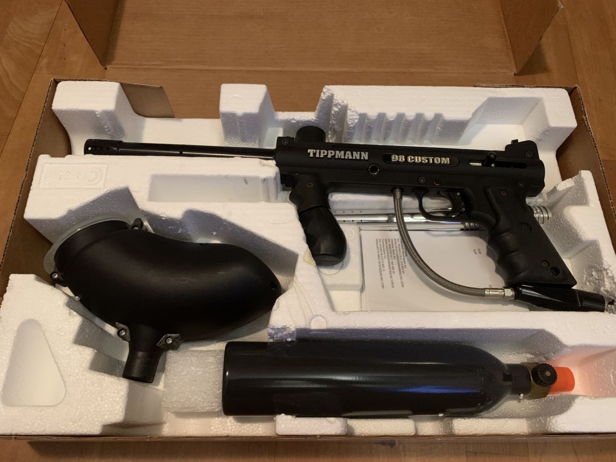 Ich verkaufe ein Tippmann 98 Set in der original Verpackung. Der Markierer ist kaum benutzt und sieht dementsprechend gut aus. Zusätzlich ist noch ein längerer Lauf dabei. Gekauft habe ich das Set 2006.