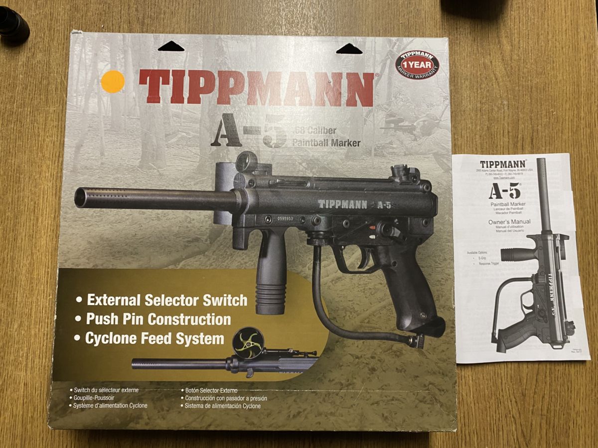 Verkaufe meine Tippmann A5, mit Freak Set, einer Transport Kiste und einem Double trigger.