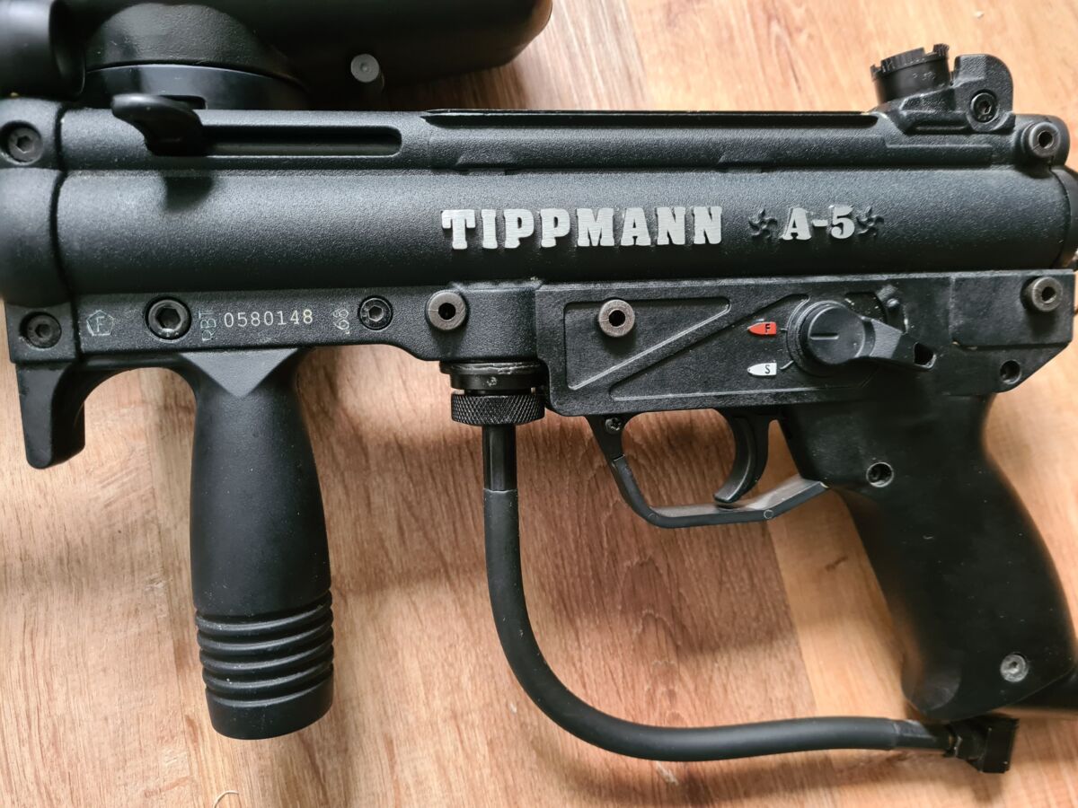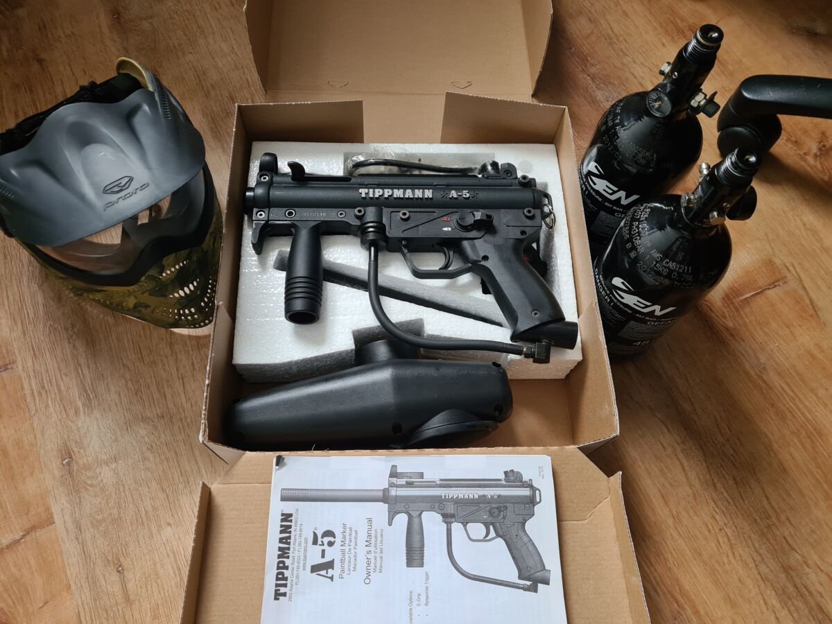 Verkaufe meine Tippman A5 in sehr gutem Zustand, da nur zwei mal genutzt. Inklusive zwei Flaschen und der Maske.