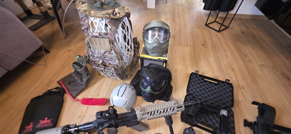 2x Maske, Weste, laufsocke, Kopfschutz, hält sogar gg Firststrike und vieles mehr, wie Waffen halter und 2x Zielfernvisiere, sowie Präsitionshalter mit 2 Beiner, guckt euch die Bilder an, alles was ihr seht kann euch gehören!