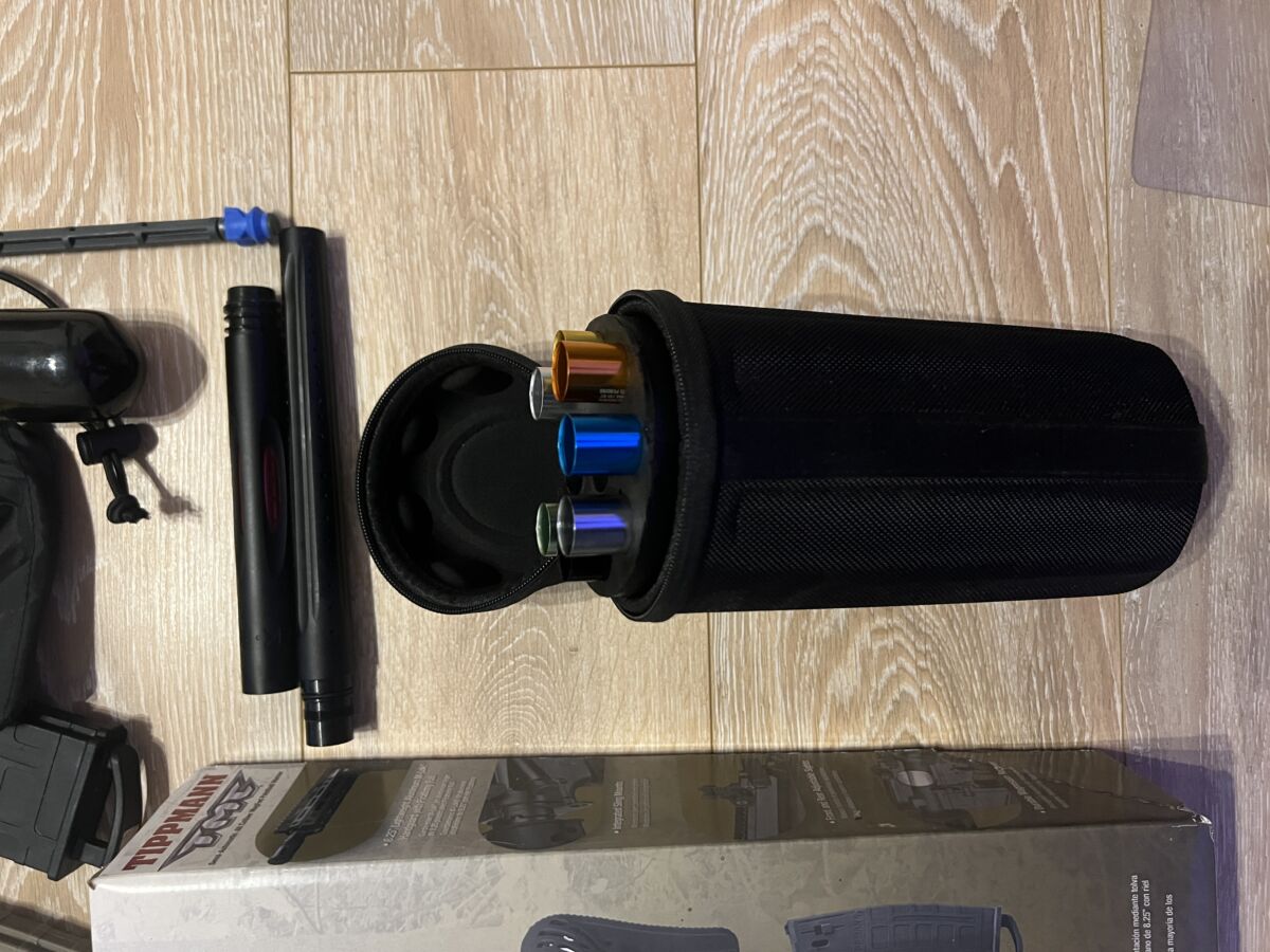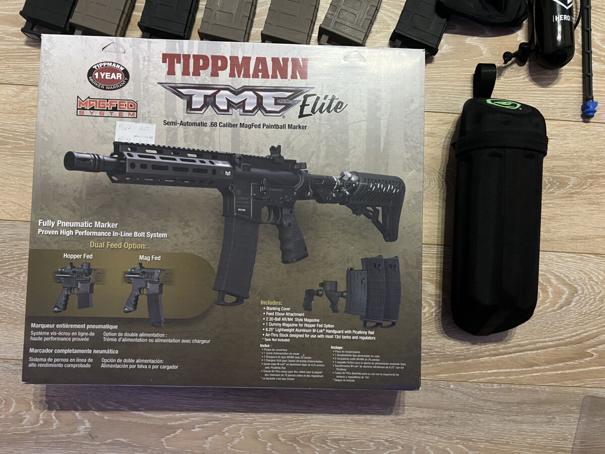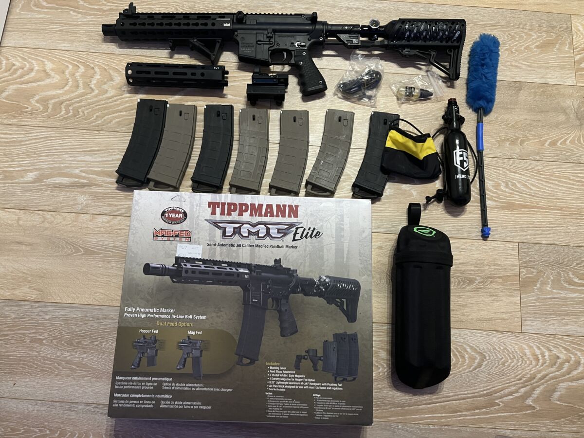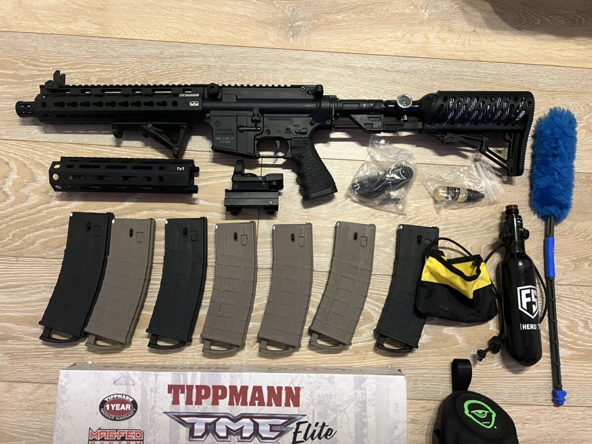 Verkaufe hier meine Tippmann TMC Elite mit massig Zubehör. Der Markierer ist ca. 3 Jahre alt und hat leichte Gebrauchsspuren. Er funktioniert zuverlässig und gut. Ich verkaufe das Set wegen Hobbyaufgabe.