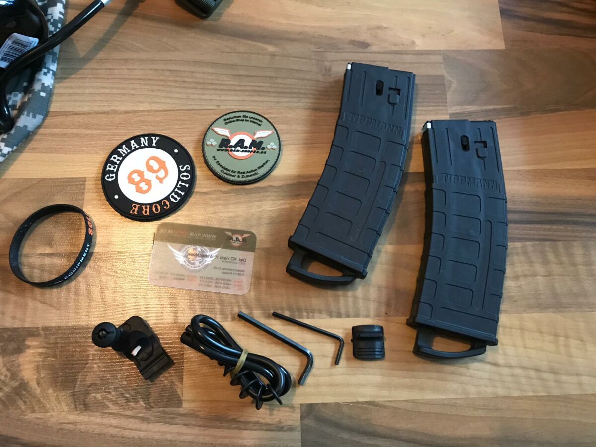 nur 1xRegenponcho auf den Bildern waren noch zwei, Brandit 80L Rucksack nur zweimal benutzt leider ist an einer aussenpacktasche ein reisverschluss defekt aber kann man noch benutzen das Fach. 2xMagazin, Laufsocke,Minihopper 50 Schuss, Sling,Schlauchschal Handschuhe nicht wie auf Bild digital camo sondern coyote. Die Tipmann TMC Limited Black Edition Deluxe 0,86 Magfed ,war nur zweimal auf dem Feld, Hobbyaufgabe. Mamba System Tipmann HP Preset 200 bar 3000PSI 48 ci, 0.8 ltr lus empire coiled remote with slide check. Hab auch noch ne maske nicht die beste aber reicht auch nur zweimal benutzt in coyote gebe ich so dazu. Gerne vorbeikommen und anschauen. schönes gesamtpaket kann man sofort loslegen!