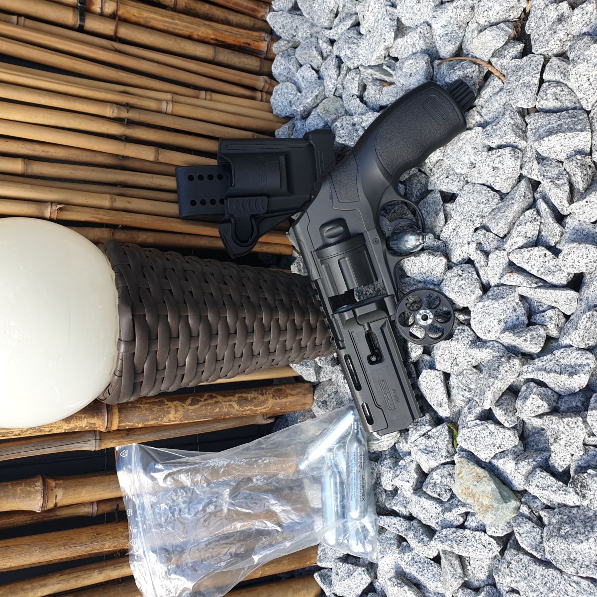 Der Revolver war bei zwei Spielen dabei wurde aber bei beiden nicht genutzt. Zum testschießen wurden ~5 Co2 Kartuschen verschossen. Der Revolver hat wirklich minimale Verschleißspuren vom holstern.
