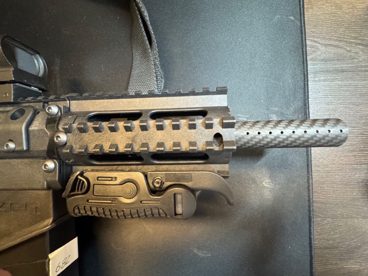 Der Markierer ist nahezu neuwertig und wurde sehr wenig genutzt – es wurden lediglich zwei Druckluftflaschenfüllungen verschossen. Entsprechend ist der Zustand technisch wie optisch top.