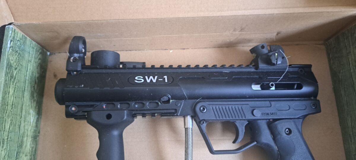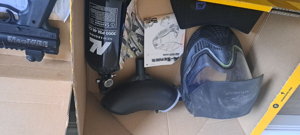 Das Paintball Set wie auf den Fotos zu sehen, war ein Dachboden-Fund und ich verkaufe alles zusammen und möchte es gerne einfach nur loswerden. Alles ist voll funktionstüchtig, aber müsste entstaubt werden. Preis ist inklusive versichertem Versand mit Sendungsverfolgung. Wer interesse hat kann mich gerne per whatzapp oder SMS kontkatieren 015565 456217, da ich keine benachrichtigung bekomme, wenn ich hier eine Nachricht erhalten habe. Grüße!
