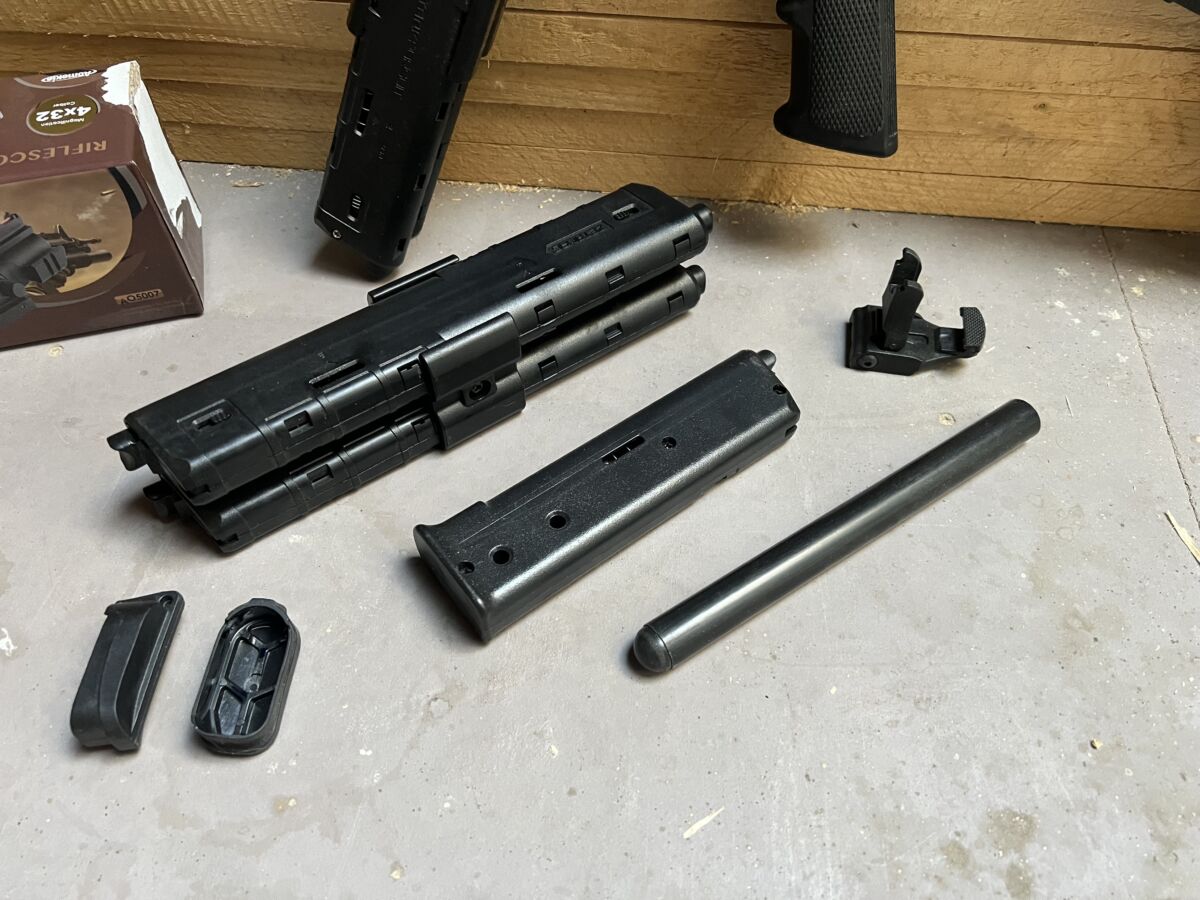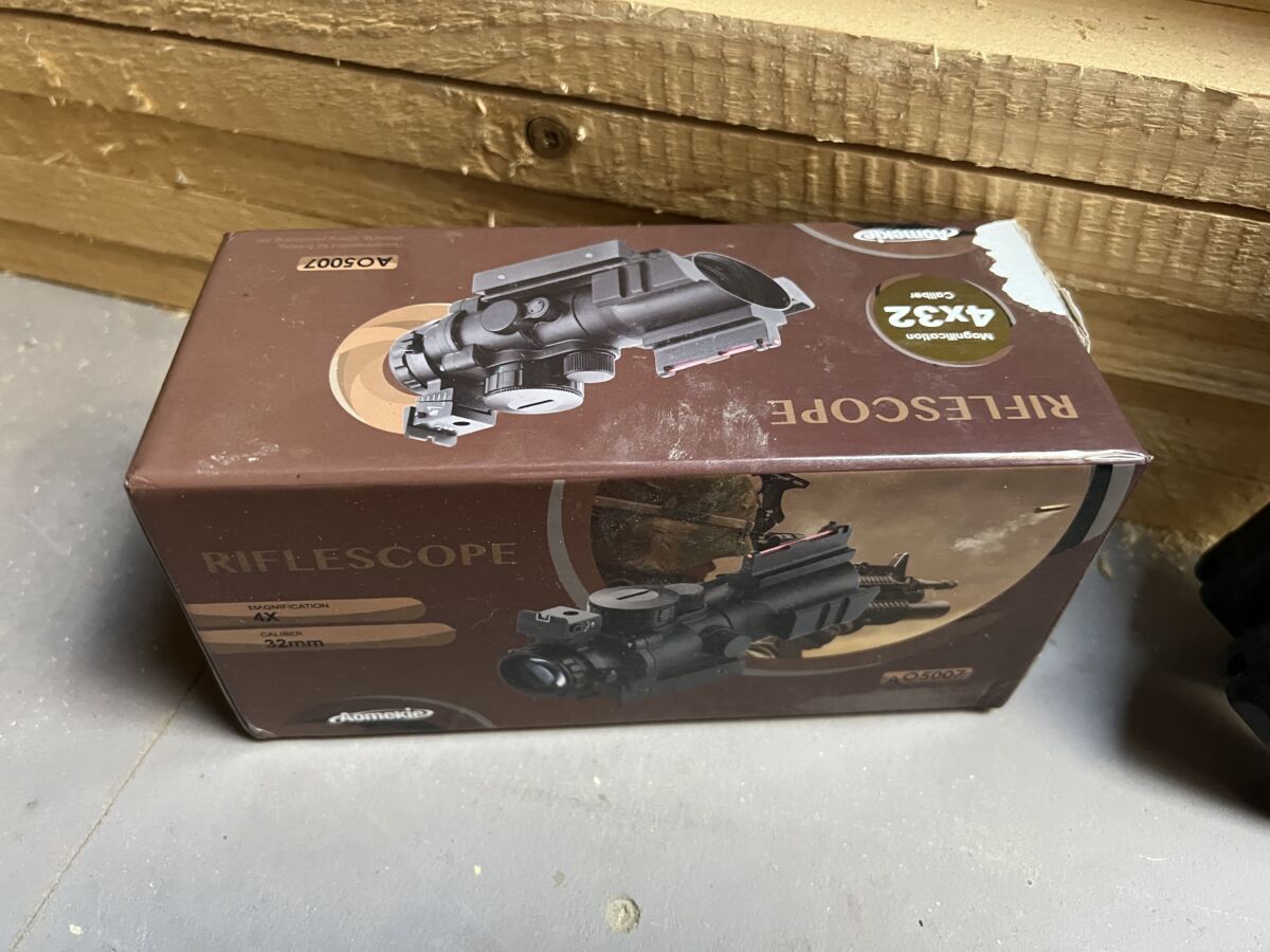 Und ein Zielfernrohr mit 4x Zoom rot Punkt ( in rot, blau und grün )