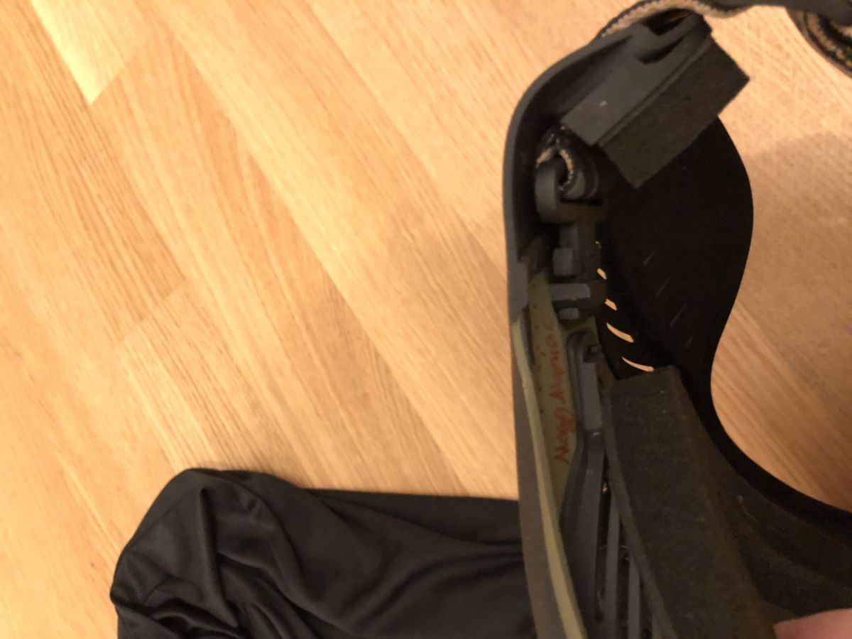 Lediglich außen rechts (2. Bild) oberflächlicher Kratzer (merkt man nicht beim tragen) und mit Edding auf Innenseite zwecks Personalisierung was geschrieben (3. Bild).